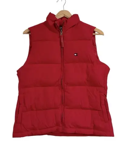Vibrant red quilted vest by Tommy Hilfiger. Features a front zipper and iconic logo detail. Good co... Show more