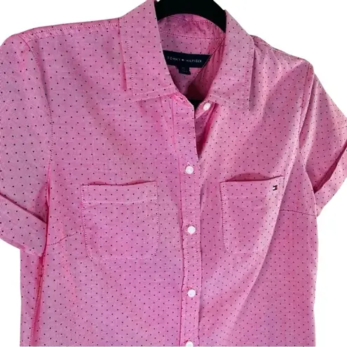 Tommy Hilfiger Pink Dot Camp Shirt NWOT Short Sleeve Button Up 100% Cotton size womens xsmall ptp 19... Show more