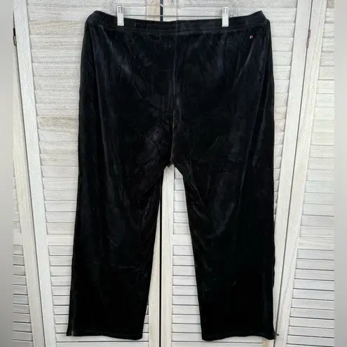 Gently used. Velour track pants in a pull on style with zipper at bottom of legs. Measures 19" acros... Show more