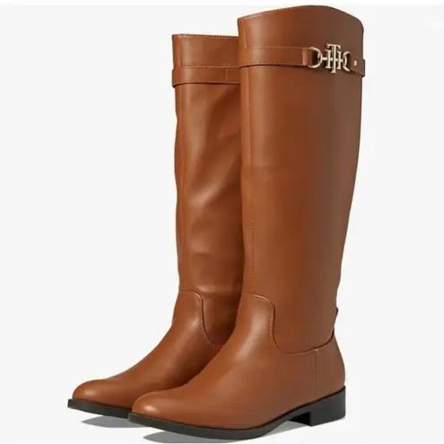 Chic knee high boots by Tommy Hilfiger. Sleek tan leather with signature logo detail. Perfect for ve... Show more
