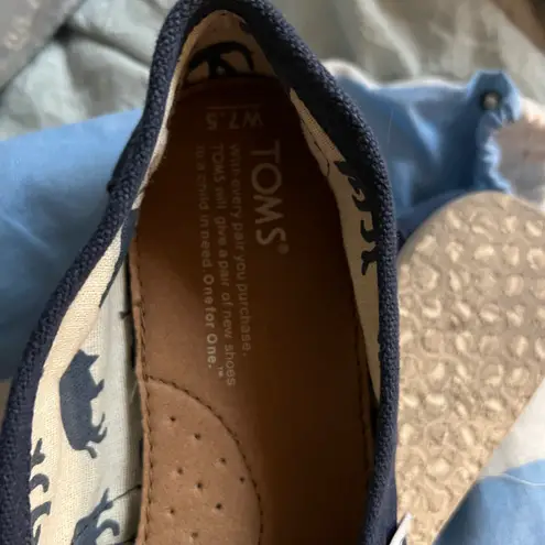 Navy blue Toms canvas slip-ons. Gently worn and wear at the bottom, and comes with storage bag.