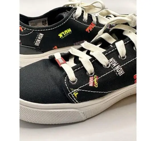 The product is a pair of Tom's Travel Lite Low Black Marvel Women's 8 Sneakers featuring superhero c... Show more