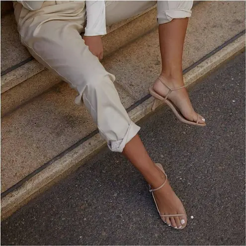 Details: – True to size – Approx. 2 1/2" heel – Adjustable ankle strap with buckle closure – Leather upper and lining/rubber sole Condition: – Excellent condition Size and Color: – Size: US 7.5 – Color: Skin Capretto