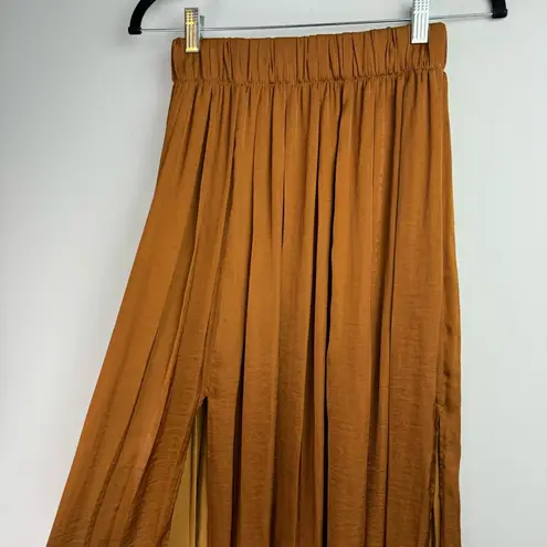 Topshop Midi Skirt Sz 2 Golden bronze copper color Satin material Midi length Pleated Double slit... Show more
