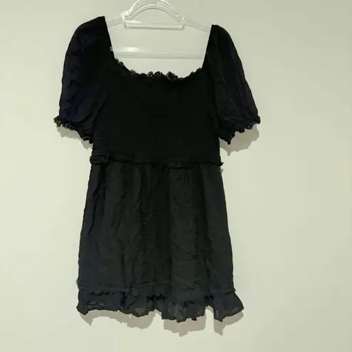 Topshop shirring eyelet broderie trim mini dress black size 12. Smocked detail. Cotton and modal. Su... Show more