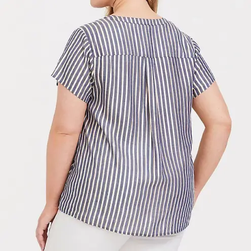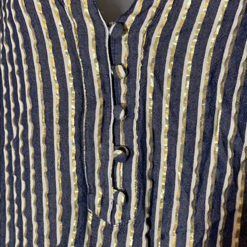 Torrid Blue and sparkly gold lurex striped blouse Ultra short capped sleeves Soft, crinkly, lightwei... Show more