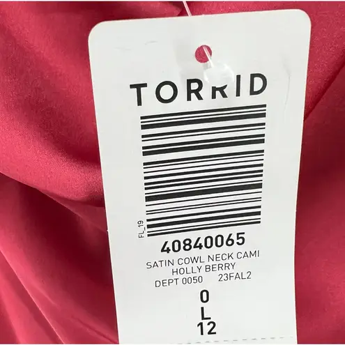 Torrid Satin Cami Top Womens Size L 12 Holly Berry Cowl Neck Adjustable Strap Casual New with tags/... Show more