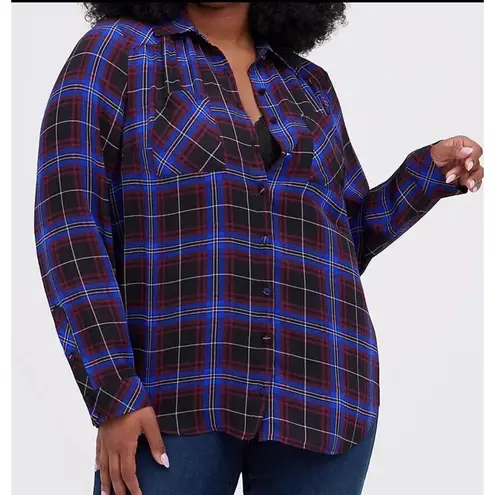 #40-0/1598-1 The Torrid Madison Georgette Button Down Blouse in Plaid Blue is a stylish and comfort... Show more