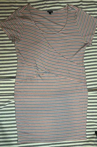 Vibrant striped top by Torrid. Features a blend of pink, blue, and cream hues.