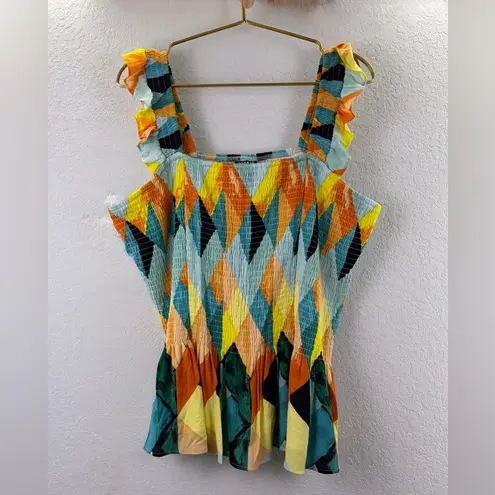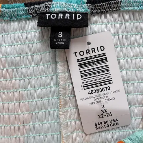 Torrid Peplum Crinkle Gauze Smocked Tank Top Geo Multi Multicolor Smocked Tank Top. Size 3X. This is... Show more