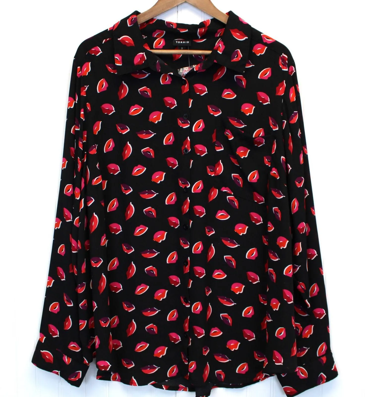 Torrid Plus Size 3X Lizzie Georgette Button Front Blouse Lips Black Pink Red -Women's plus size 3X... Show more