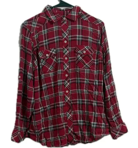 Stylish plaid button-down shirt. Features long sleeves and chest pockets. Perfect for casual wear.