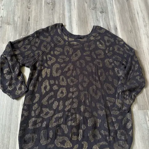 Torrid Size 2 Gray Sweater with Gold Animal print, pit to pit 24, length 29 - $28 - From Beth