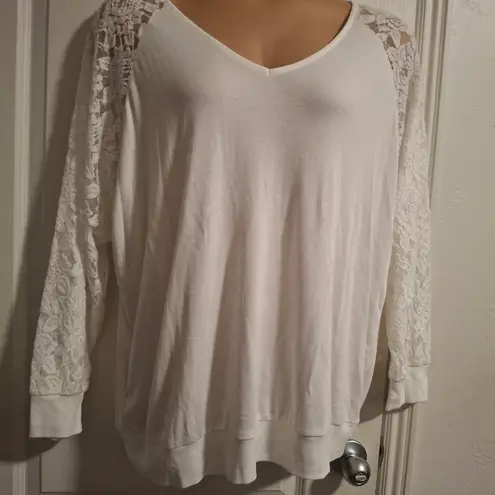 This elegant white top features delicate lace sleeves, perfect for adding a touch of sophistication... Show more