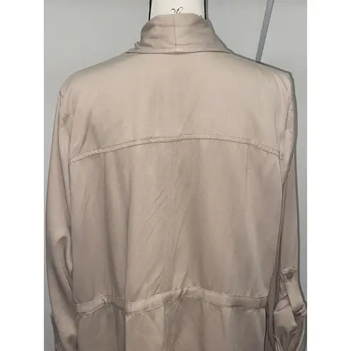 Torrid womens lightweight tan anorak Sz 2 drape front jacket with Drawstring.