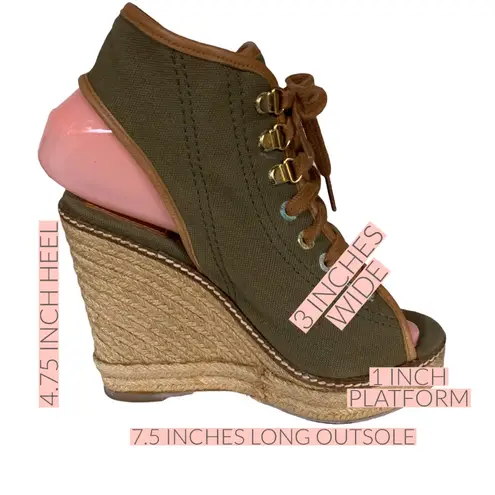 This listing is for the shoes pictured. Tory Burch -army green and tan -fabric -lace up -peep toe... Show more