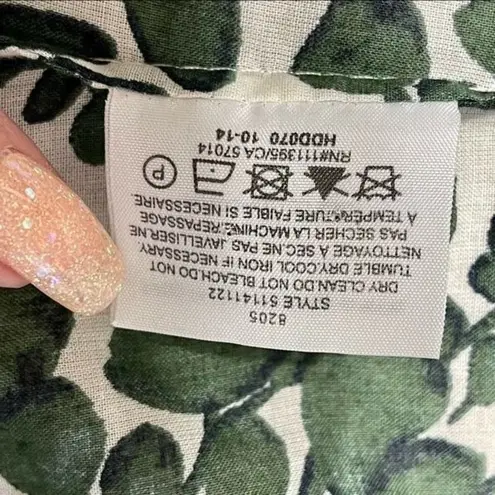Tory Burch Issy Vine Leaf Print Button Down Roll Tab Top. Green & White floral print button up with... Show more