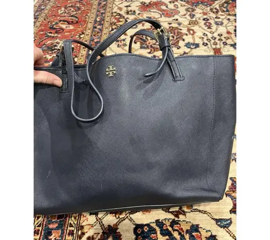 Tory Burch Large Saffiano Leather Buckle Tote Bag Purse in Navy Wear and tear throughout. Look at pi... Show more