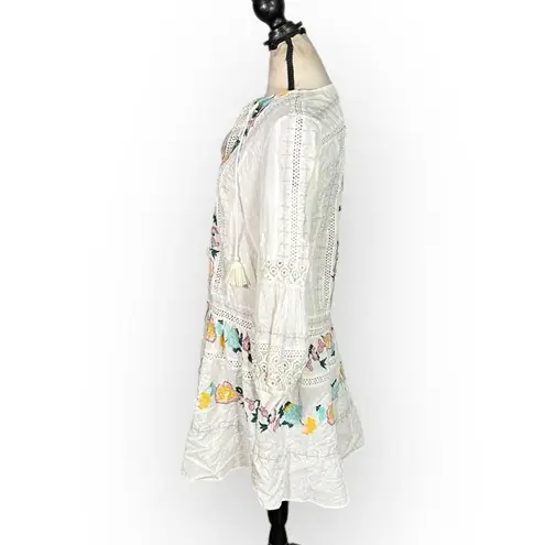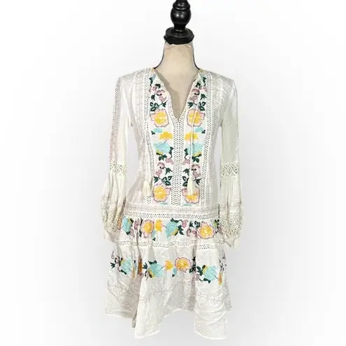 Tory Burch Mini Dress Women's XS White Blue Embroidered Boho Long Sleeve V-Neck Sweet yet bohemian,... Show more