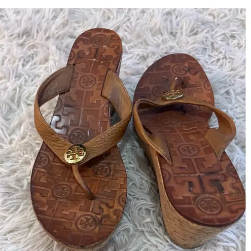 Elevate your warm-weather style with these chic Tory Burch wedge flip-flops. The rich tan leather st... Show more