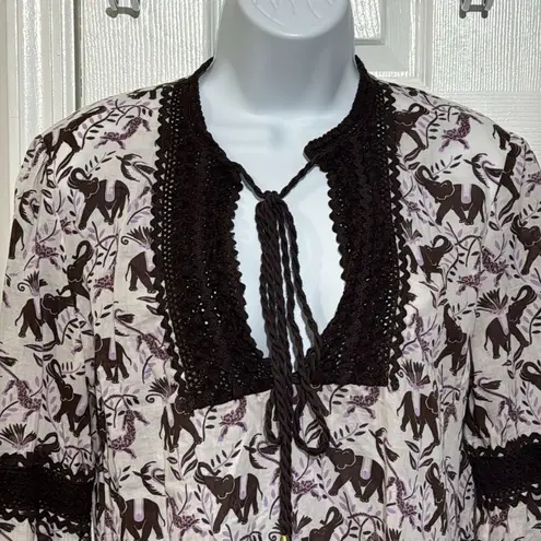 Tory Burch Women’s Long Sleeve Tie Front Cotten Elephant Print Blouse size 8 in excellent condition.... Show more