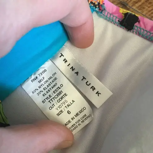 Trina Turk coconutgirl, tropical, strapless, vibrant multicolored floral bikini top with twist front... Show more