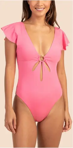 Trina Turk Geranium Pink Monaco Flutter V-Neck One Piece Swimsuit Size 14 XL Brand: Trina Turk Siz... Show more