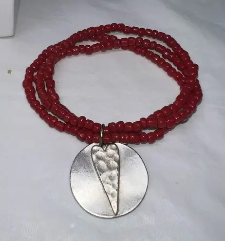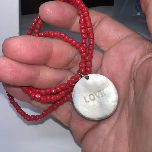 Tripleā€Ž Row Red Beaded Stretch Love Charm Bracelet - $10 - From A Little