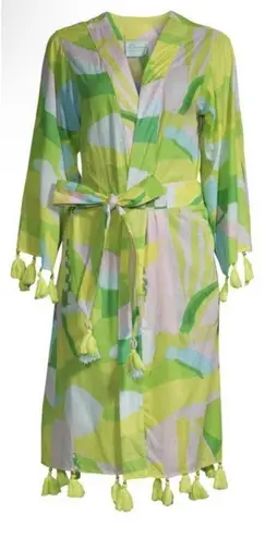 The True Destinations Printed Tassel-Trim Cover-Up Robe in medium size is a stylish and comfortable... Show more