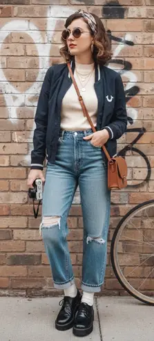 VTG True Religion Bomber Jacket Womens Black LS World Tour 2002 Graphic Sz L NO STAINS , Clean condi... Show more