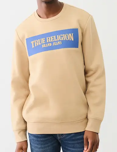 True Religion Embossed Arch Logo Sweatshirt Beige Soft Fleece Lined Size Medium NEW! Excellent cond... Show more