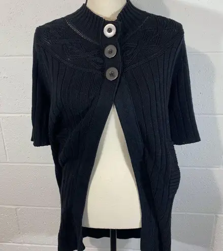 Size EXTRA LARGE 55% Acrylic 45% Cotton Closures look like buttons but are in fact snaps. 3 snap closure Fair preowned condition Approximate Flat Lay Measurements in Inches: Armpit to armpit: 19.5 Shoulder to hem: 31 Sleeve length : 11