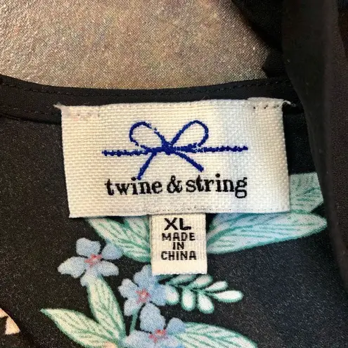 Twine and String Women’s Plus Floral Black Sheer Blouse Pom Pom Trim Size XL. The back of the blouse has a tie. Measurements in photos. In good, pre-loved condition. Comes from a smoke free home.