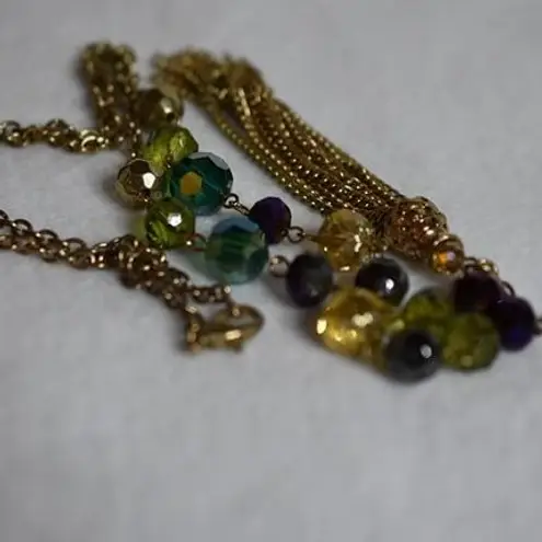 Twinkling Chic Multi Color/Shape Beaded Gold Tone Link Chain Tassel Necklace - $10 - From Chrystal