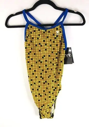 TYR Womens One Piece Swimsuit Diamondfit Open Back Geometric Yellow 34 US M Size M - $38 - From Jen