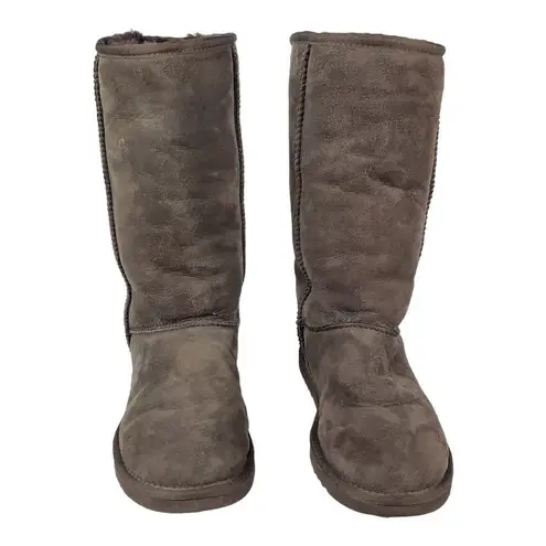 Ugg Boots Size 6W Sheepskin Lining Leather Pull On Comfy Warm Classic Tall Brown Genuine leather up... Show more