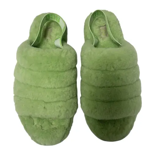 UGG Fluff Yeah Slide On Slippers Slingback Plush in Apple Green Women's Size 11 10mm sheepskin upper... Show more