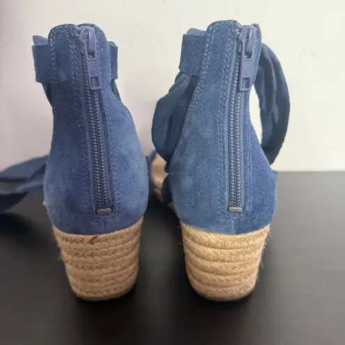 UGG Trina Wedge Espadrille Ankle Wrap Tie Up Sandals Size 10 Blue Suede BOHO Pre Owned, In Great S... Show more