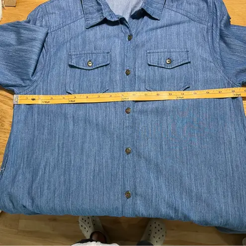 Umgee Blue Chambray Denim Button Front Shirt Dress Long Roll Tab Sleeve Casual Size: S button fro... Show more