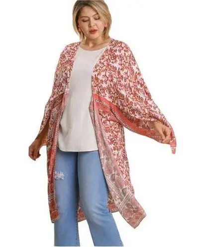 Umgee Boho Floral Print Open Front Wing Sleeve Kimono Red Size M - $28 - From Jacqueline