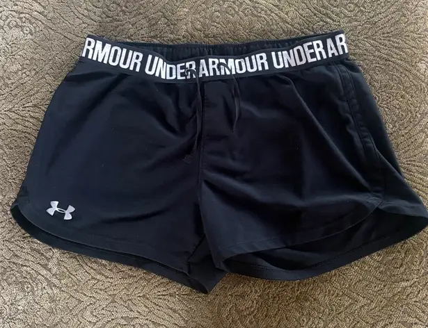 Sleek black shorts with bold logo waistband. Ideal for workouts.