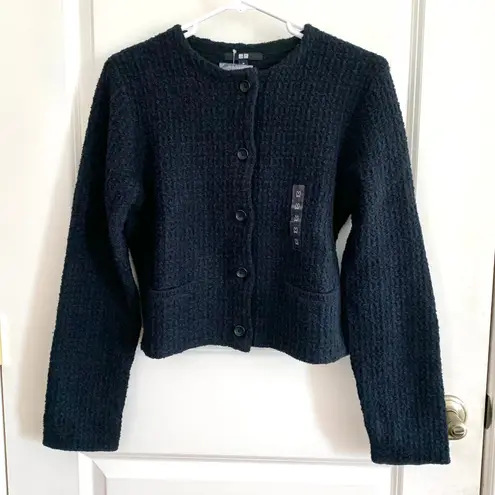 NWT Uniqlo Button Down Knitted Short Jacket in Black Textured knit adds a distinctive style to any... Show more