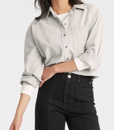 Comfortable gray oversized shirt. Ideal for versatile styling. Universal Thread Flannel Button Up S... Show more