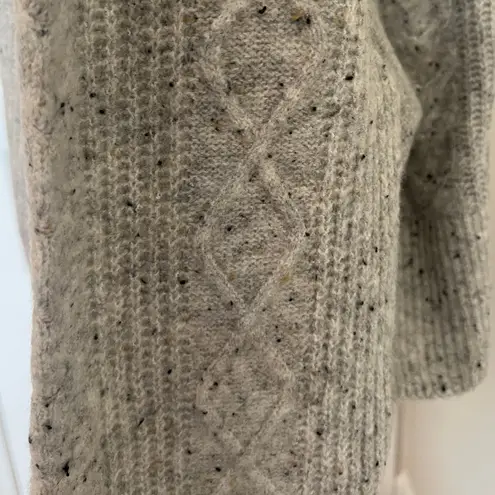 Elegant heather gray sweater with crew neck. Features intricate cable knit pattern. Perfect for casu... Show more
