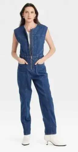 Universal Thread Tailored Blue Dark Wash Denim Sleeveless Jumpsuit Sz 10 - $25 - From Thrifted