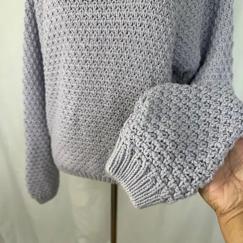 Evoke cozy charm with this lilac-hued knit sweater. A textural symphony unfolds in the open-stitch d... Show more