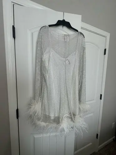Untamed Petals Disco Sheer Dress with Feathers comes with Slip White Size XXL - $330 (22% Off Retail) - From Megan