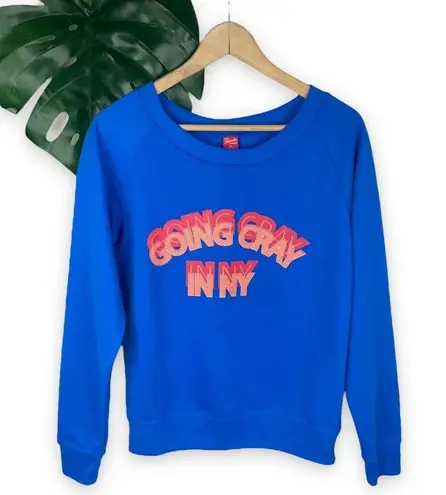 Classic crewneck sweatshirt from Islandia in vibrant cobalt blue featuring cool, vintage-inspired "G... Show more
