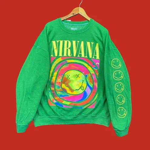 Nirvana Smiley Face Overdyed crewneck sweater size s/m Its approximately 27 inches pit to pit 27 inc... Show more