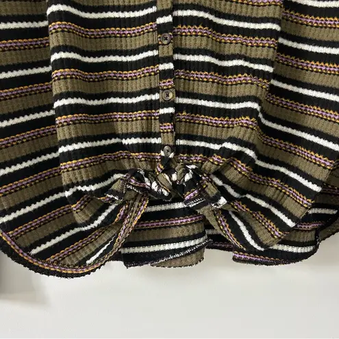 UO Out From Under Thermal Tie Up Stripe V Neck Long Sleeve Cardigan Color Olive Green Purple Orang... Show more